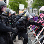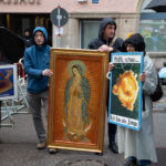 Dagegen formierte sich Gegenprotest, der bereits zu Beginn an der Frauenkirche da war und praktisch während der ganzen Strecke den Marsch lautstark protestierend begleitete. Vor allem mit Sprüchen wie „Hätt Maria abgetrieben, wärt ihr uns erspart geblieben“, „Lieber geleckt als unbefleckt“ und „My Body my Choise“. Vereinzelt kam es auch zur Rangelein durch die Polizei gegen den Protest, eine Straßenbloackade wurde aufgelöst. Am Friedensengel wurden nach einem Zwischenfall Journalist*innen festgenommen und mehrere Stunden lang festgehalten.