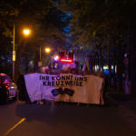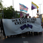 Zu einer Demonstration für Queerfeminismus und gegen Sexismus (etc.) trafen sich am 10. Mai mehrere hundert Menschen in München. Der Protest am Abend richtete sich insbesondere gegen den am nächsten Tag stattfindenden 1000-Kreuze-Marsch christlicher Fundamentalist*innen sowie ihrer rassistisch-rechten, anti-queeren und antifeministsichen Propaganda. Lautstark zog der Demozug mehrere Stunden durch München, ab Nähe Hauptbahnhof über Stachus, Gärtnerplatz und bis zum Café Marat. Dabei gab es Redebeiträge und mehrere Zwischenkundgebungen.