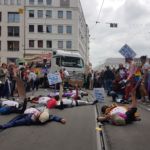 Während der Parade gab es eine Protestaktion „Die-In-Perfomance“ gegen die Teilnahme der Institutionen Polizei, CSU und Bundeswehr beim CSD richtete. (Ausdrücklich nicht gegen die Queerness der beteiligten Teilnehmer*innen!) Siehe dazu auch die Pressemitteilung auf dem folgenden Bild.