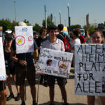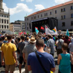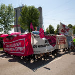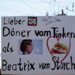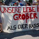 Über 25.000 Menschen beteiligten sich heute bei miserablen Wetter an der Demonstration #ausgehetzt, die sich insbesondere gegen die Flüchtlingspolitik der CSU und die Verrohung der Sprache richtete. Die CSU versuchte vorher noch in einer äußerst peinlichen Aktion gegen die Demonstration zu hetzen. (Siehe auch erstes Foto.) Das hielt die Menschen nicht davon ab, sich an mehreren Demonstrationszügen zu beteiligen. Los ging es bei strömenden Regen auf dem Goetheplatz, an der Theresienwiese stießen noch viele Demonstrant*innen dazu, alle zogen zum Königsplatz, der brechend voll war.