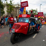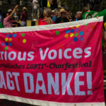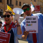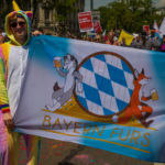 Über 25.000 Menschen beteiligten sich heute bei miserablen Wetter an der Demonstration #ausgehetzt, die sich insbesondere gegen die Flüchtlingspolitik der CSU und die Verrohung der Sprache richtete. Die CSU versuchte vorher noch in einer äußerst peinlichen Aktion gegen die Demonstration zu hetzen. (Siehe auch erstes Foto.) Das hielt die Menschen nicht davon ab, sich an mehreren Demonstrationszügen zu beteiligen. Los ging es bei strömenden Regen auf dem Goetheplatz, an der Theresienwiese stießen noch viele Demonstrant*innen dazu, alle zogen zum Königsplatz, der brechend voll war.